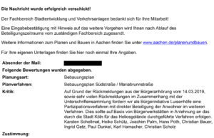 Bis zum 12.04.2019 können noch Eingaben zum Bebauungsplanverfahren unter Städtische Seite zur Beschreibung des Bebauungsplanverfahrens Formular zur Onlineeingabe gemacht werden. Die online