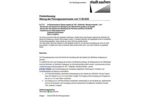 Uns lässt dies ratlos zurück!!! Der B-Plan ist im Planungsausschuss (oder über Ratsinfo Aachen – Sitzung des Planungsausschusses vom 11.09.25) und im Stadtrat beschlossen worden.